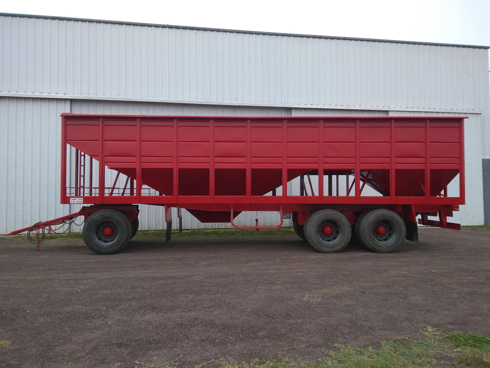 Capacidad: 20 TN., Dimensiones: largo total 6,50 m. / Ancho 2,60 m., Despeje suelo/base inferior tolva: 0,72 cm, Tara total: 4000 kg..