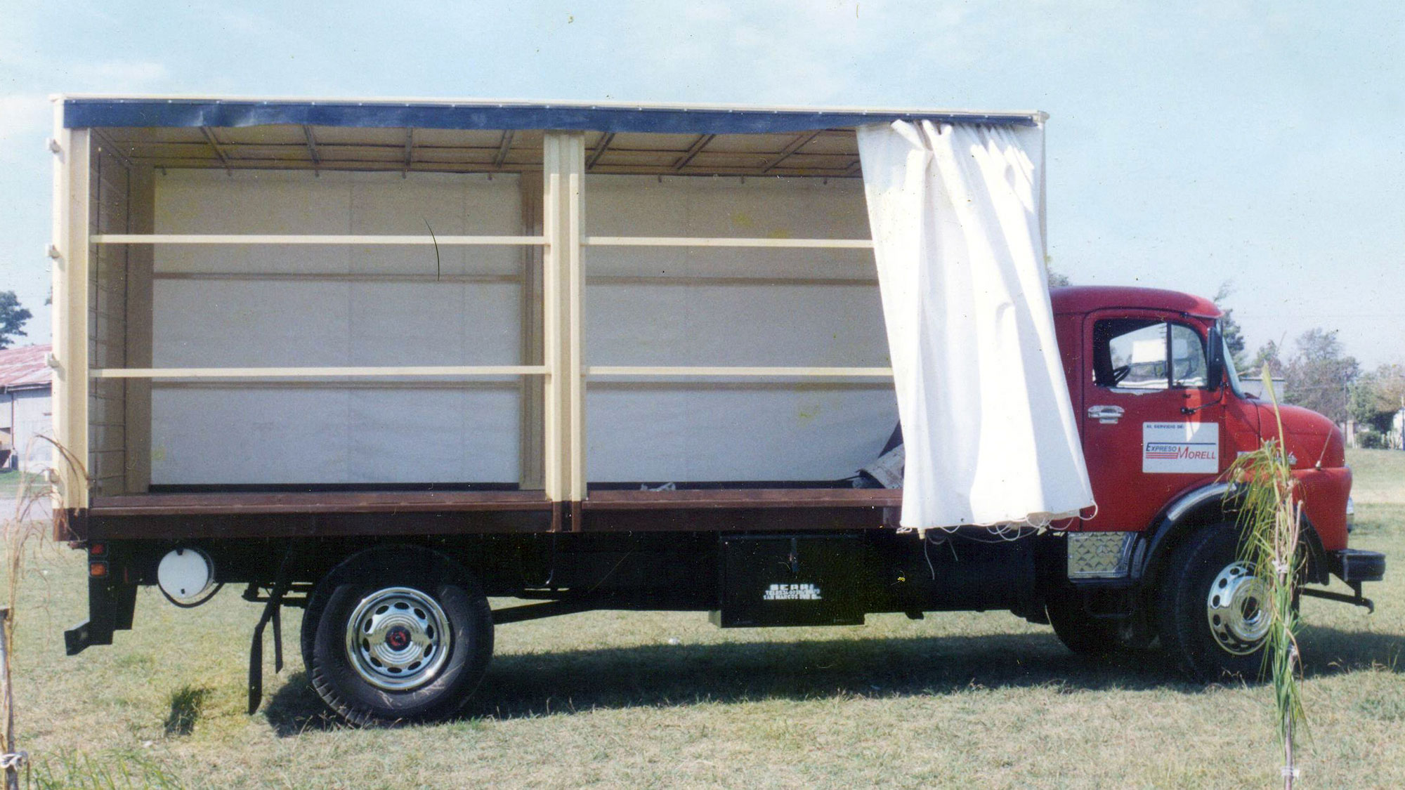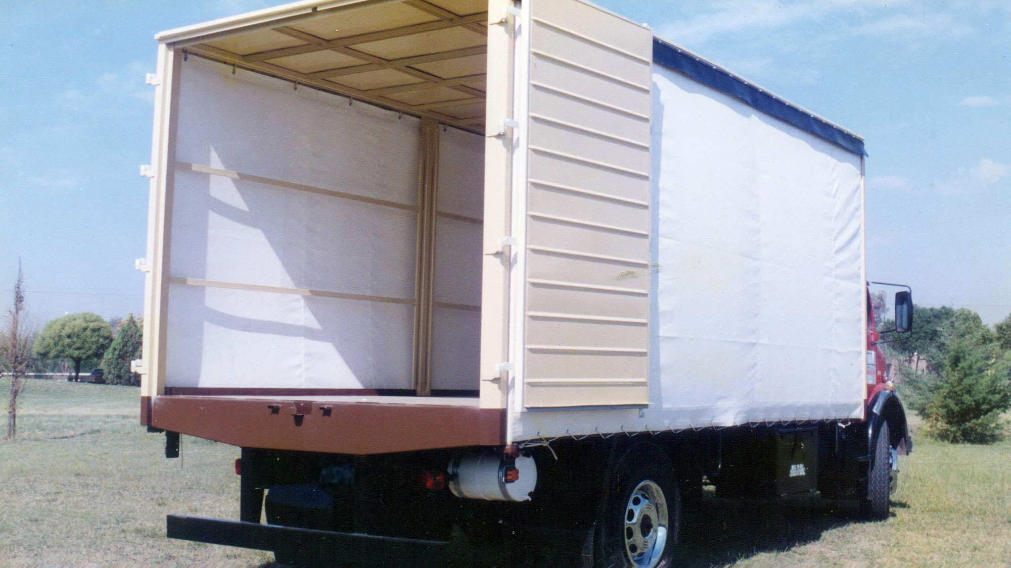 Base metálica en chapa espesor 3,2 mm., Frente construido en chapa estampada de 1.6 mm de espesor, Techo reforzado, Lonas laterales.